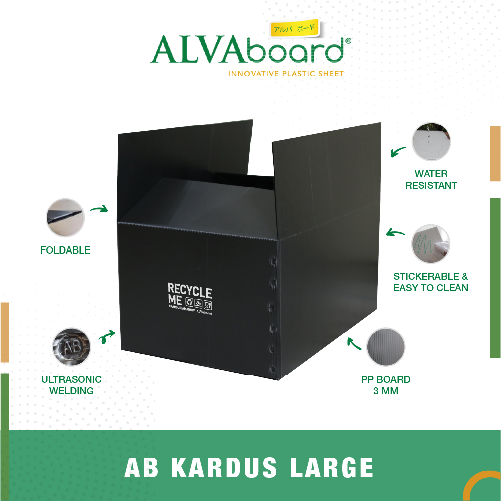 ALVAboard Kardus Large merupakan inovatif #kardusjamanow terbuat dari bahan Polypropylene (PP) Board kualitas premium dari ALVAboard yang memiliki banyak keunggulan, dan multifungsi.