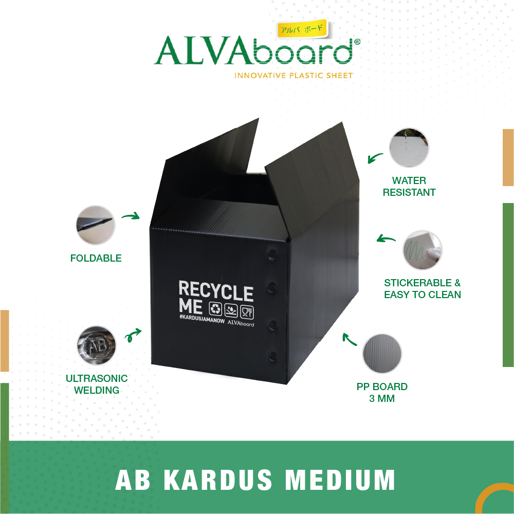 ALVAboard Kardus Medium merupakan inovatif #kardusjamanow terbuat dari bahan Polypropylene (PP) Board kualitas premium dari ALVAboard yang memiliki banyak keunggulan, dan multifungsi.